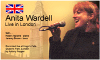 Anita Wardell - Live in London (Real Audio) Anita Wardell recorded live at Hugo's Cafe, London, with Robin Aspland piano and Jeremy Brown bass. From jazz standards to bebop and scat, Anita is a dazzling performer. Experience the warmth of this live performance, recorded by Antony Pepper. (68 minutes)