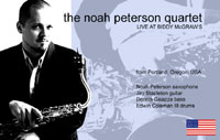 The Noah Peterson Quartet Recorded live at Biddy McGraw's, Portland Oregon USA. Noah Peterson sax, Jay Stapleton guitar, Dennis Caiazza bass, Edwin Coleman III drums. Raw, unedited and real...like jazz should be! (Windows Media 60 mins)