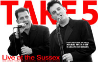 Take 5 Live at the Sussex Take 5 featuring the classy jazz vocals of Mike and Steve Foenander, with David McEvoy piano, Tim Bowen bass, John Stephens drums, and special guests Mark Murphy and Marlene Richards. Recorded live at the Sussex Hotel, Adelaide. (Windows Media 95 m